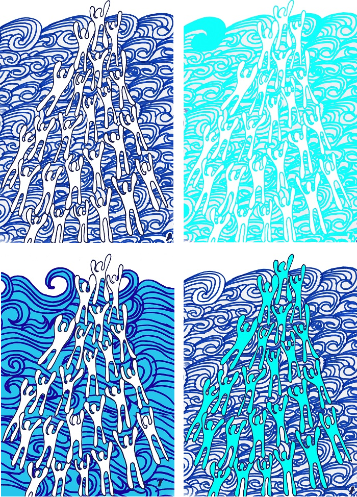 Réponse : Parmi les trois images que vous me proposez, celle que j'affiche ici est, de loin, ma préférée. Certes, les oiseaux en haut ne sont pas aussi stylisés, simplifiés, je dirais essentialisés, que les humains au-dessous, mais c'est bon ! La sœur Christiane qui passait derrière ma chaise au moment où j'ai ouvert cette image a exprimé son allégresse en la voyant (par-dessus ma tête) sans que je lui demande son avis — Comme quoi, elle m'espionne ; son cri d'approbation l'a trahie ! |